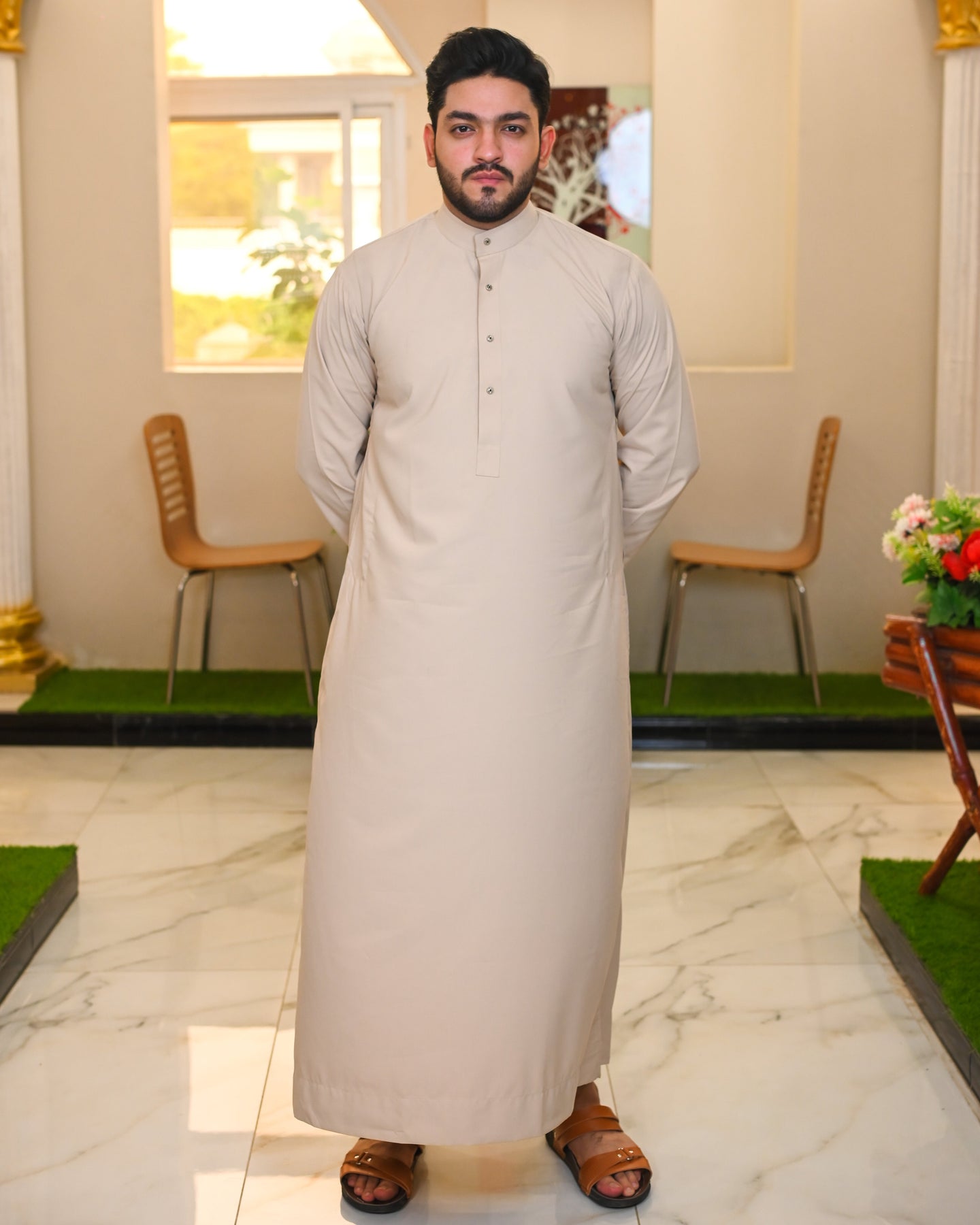 Yeh thobe har season ke liye best hai. Kapra lightweight hai aur design bohot stylish.